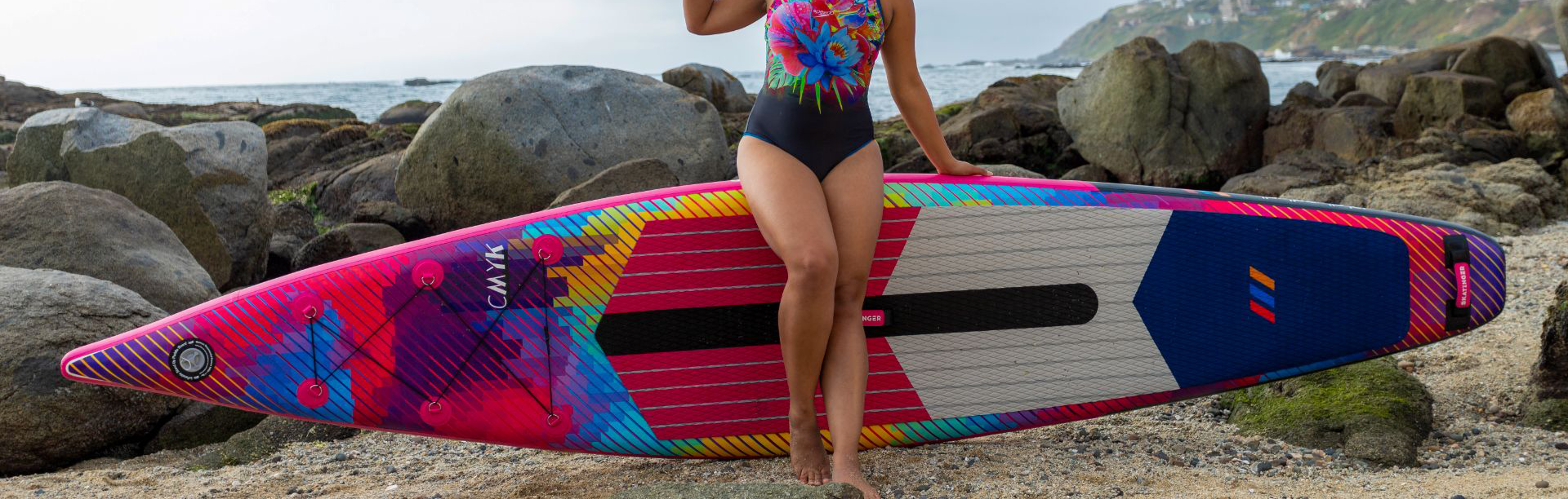 Double Layer Technology is the premium construction we use on our specialized boards which are much stiffer and more durable. It involves fusing a second layer of hard-wearing reinforced PVC to the Double Wall Fabric drop stitch core at the raw material stage, rather than hand gluing it. The high-tech industrial process could reduce 20%-25% in board weight by saving glue while making the boards stiffer.
