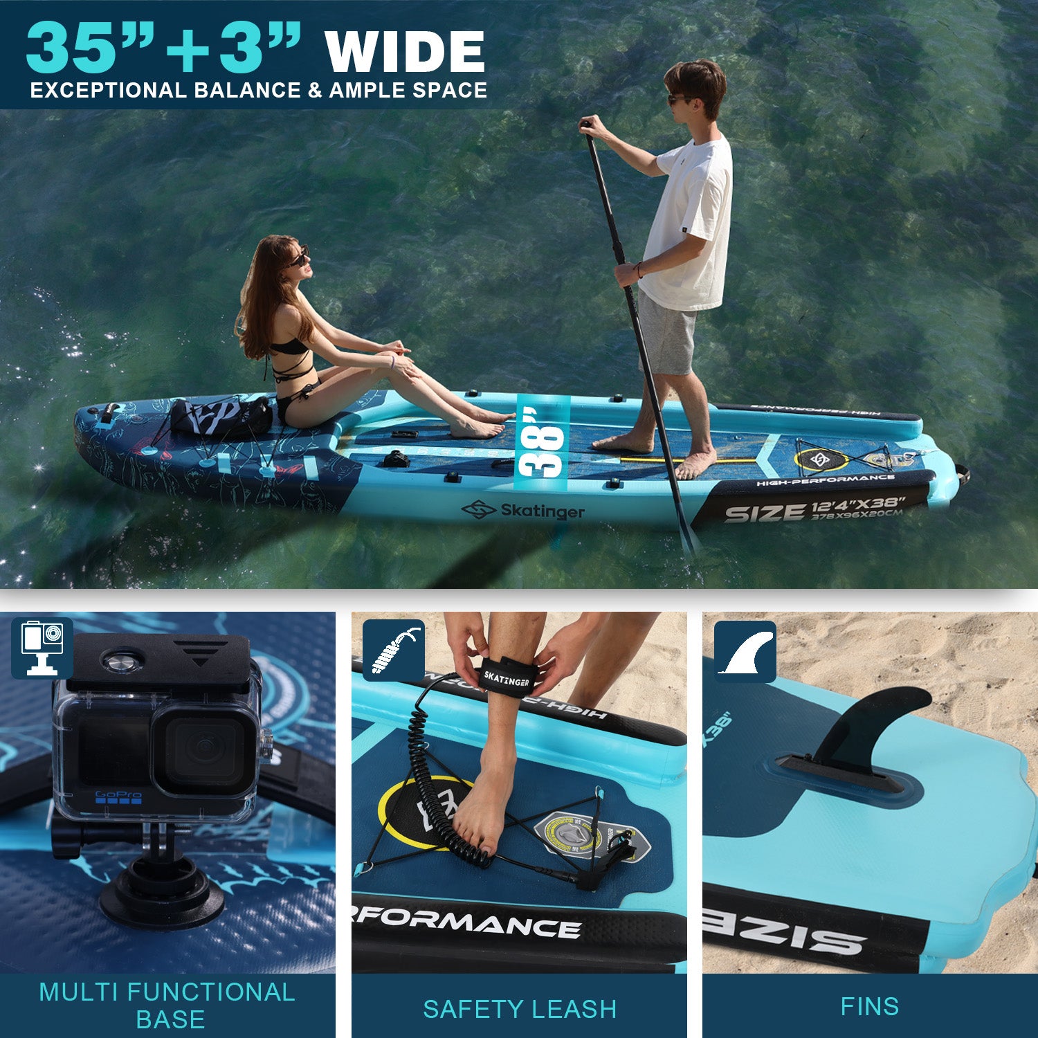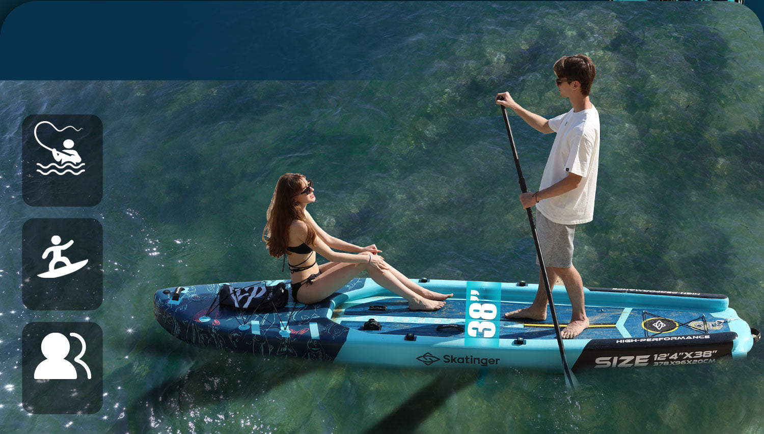 🔸 Spacious dimensions: 12′4″ × 38″ × 8″ delivers superior buoyancy and balance
